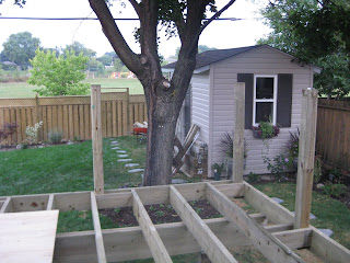 So the backyard is never done, right? Or wait is that a house? Anyway here is what has been going on outside. To accompany my new custom built shed and my fence is a brand new deck. Here is what it looks like so far.
